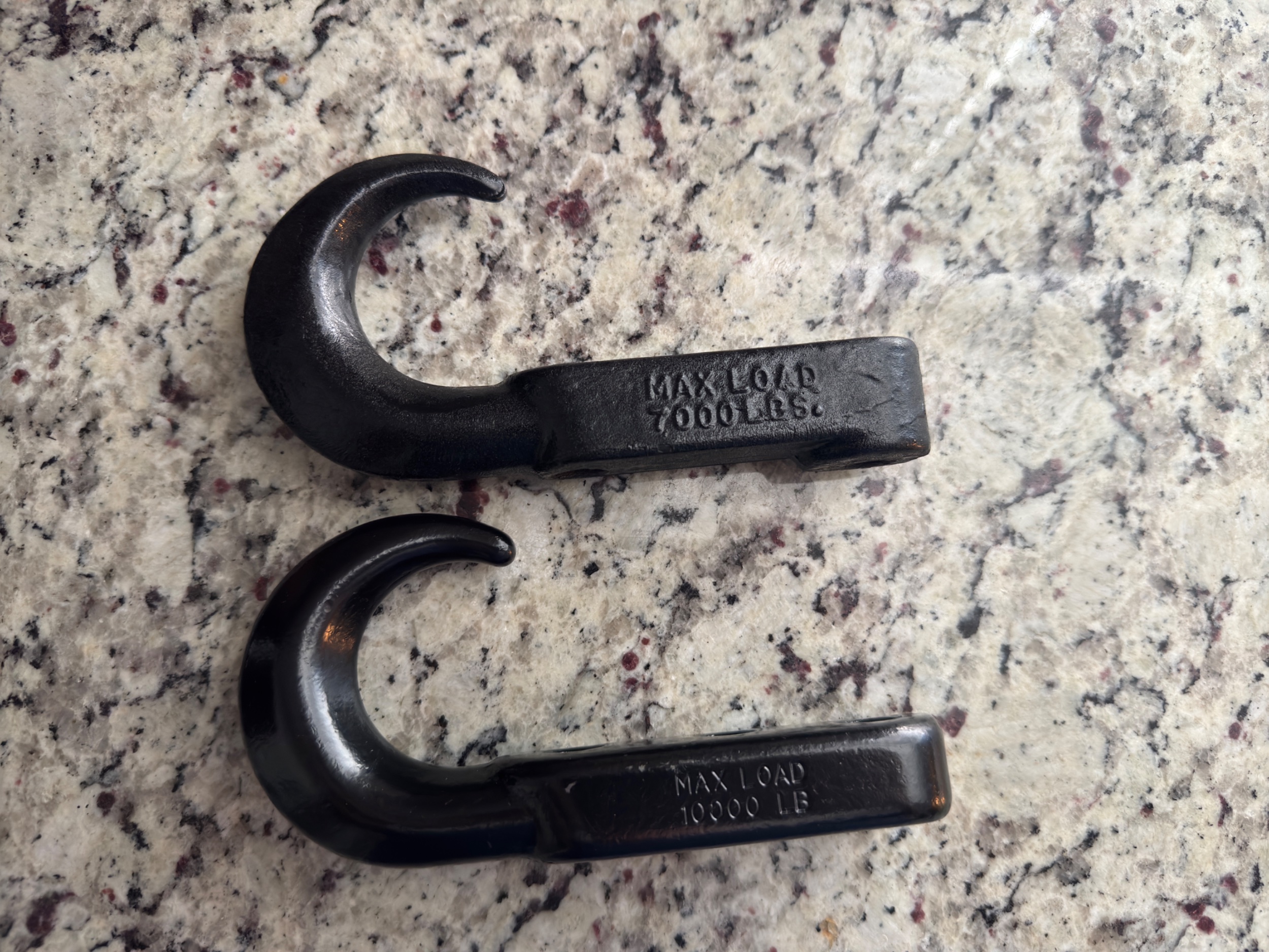 I finally received the backordered Rugged Ridge hooks. They are actually very nice seeming quality. Nice and flat on the bottom, and the body is actually a bit shorter, so that gives me some bolt length back. The step in the stock hooks combined with the tall base of the stock hook and the thickness of the winch plate made me not really comfortable with the stock bolt length. I felt through the frame to the weld nut and threads were not protruding. However, now with the shorter hook with no step, they protrude. I gained about 2-3 threads of engagement. I think I’m good for recovery now.