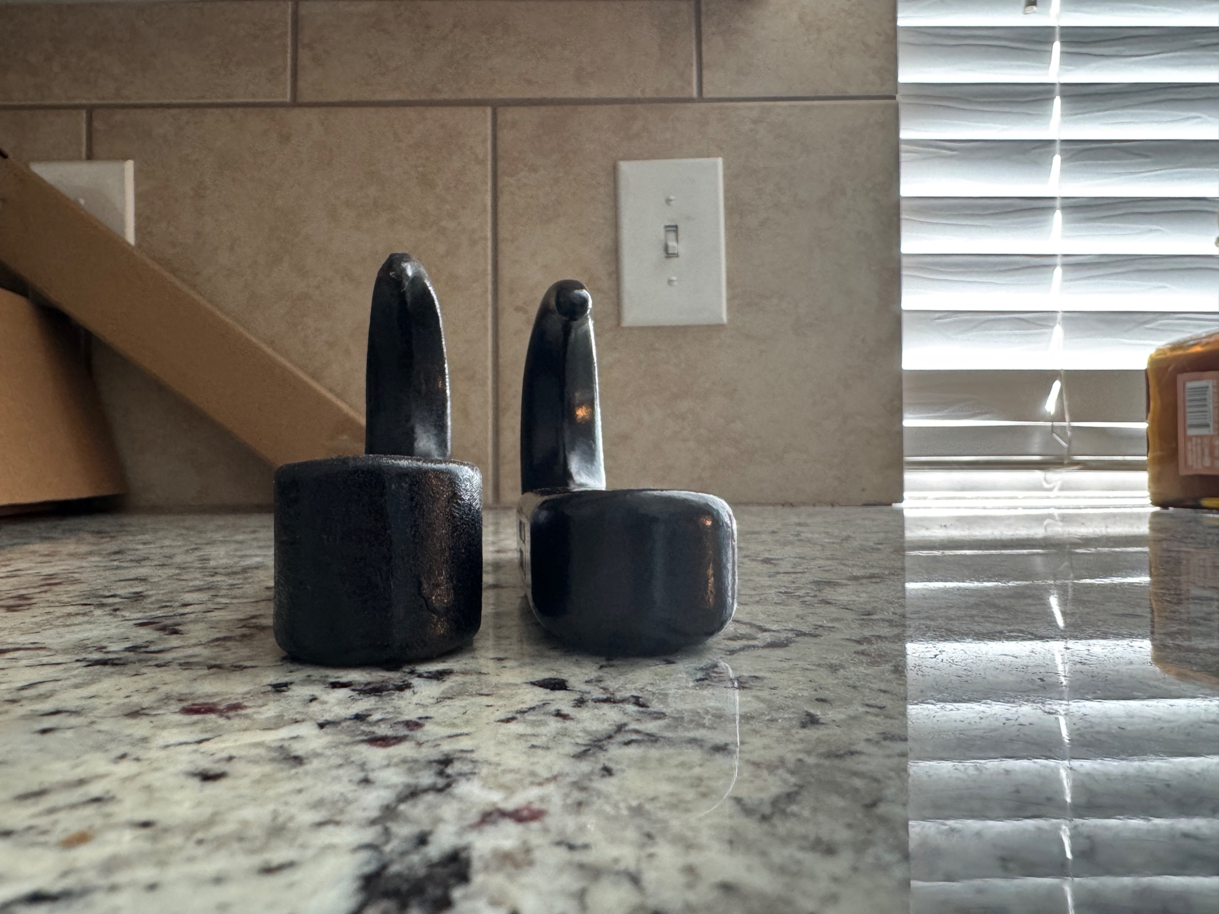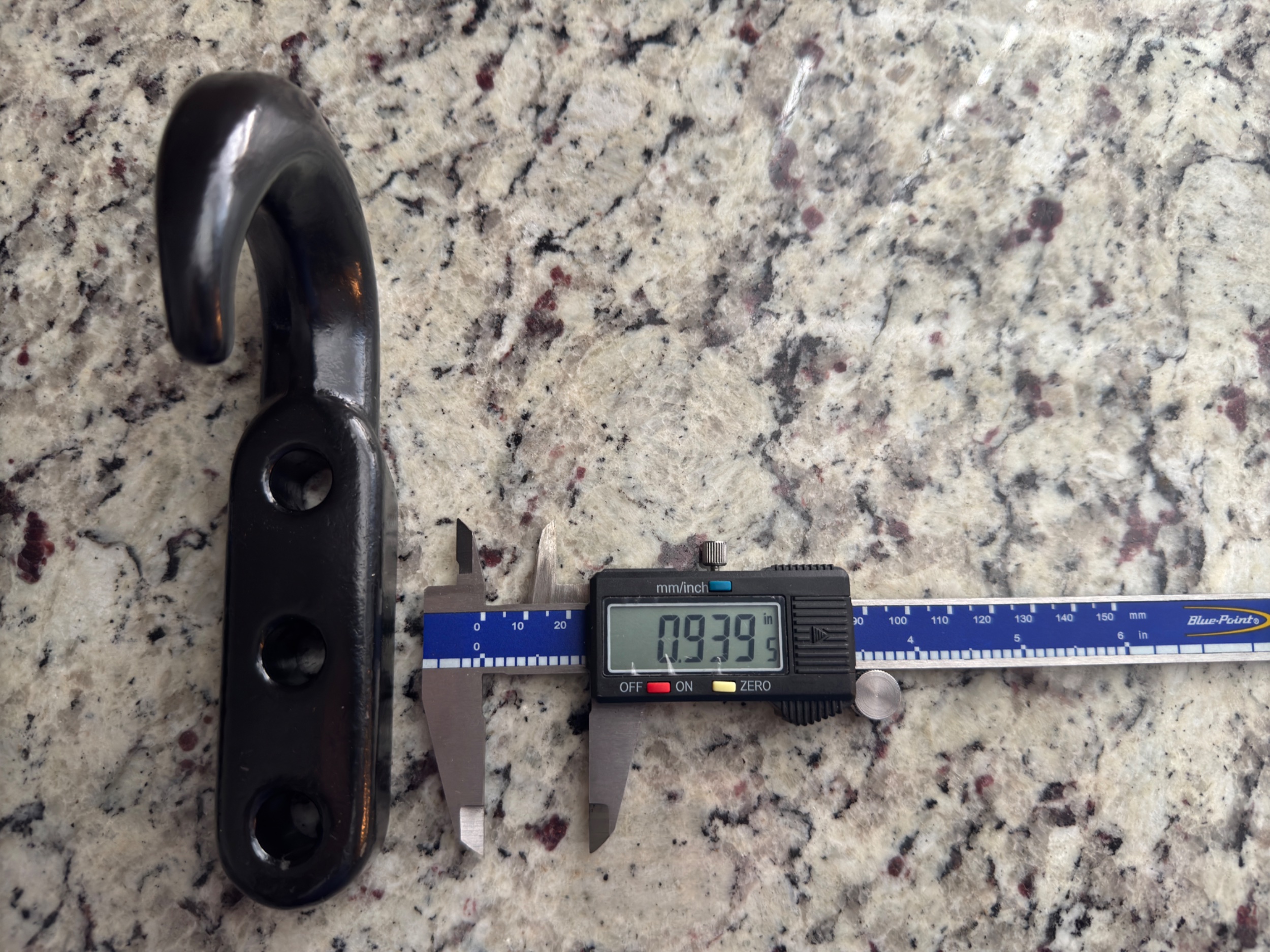 Measures the differences from top of hook base to the counter top. Almost 1/4” difference.