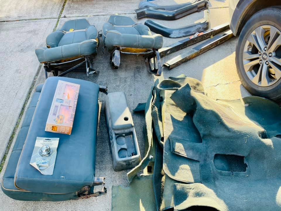 Can you tell me what you did for that side seat repair? How did you find the fabric/color match? Most jeeps with this interior are destroyed or have splitting like this and would love to know where you sourced the materials from...many thanks!While scouring the United States Craiglslist in evey city looking for the Sahara seats, a fella on the Jurassic forum said he had everything that I need~ he's a jurassic nut. So, I bought just about everything from him: All correct seats, factory used carpet, radio, fog lights(front and rear), center console, etc.