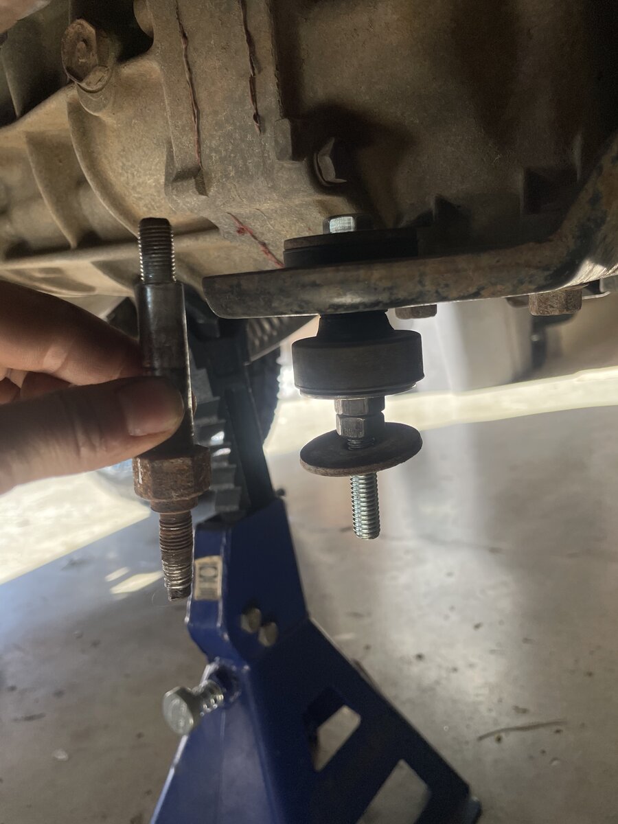 The bolt/post holding the torque arm(?) of the transmission mount was rusted so I got some stainless hardware and rigged a replacement while I was under there.