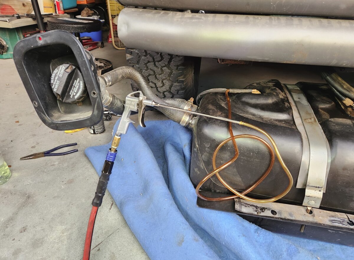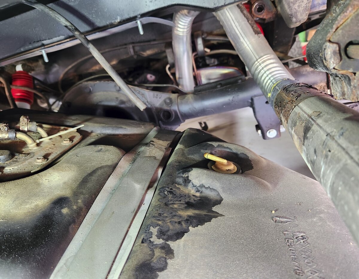 I don't have a body lift so trying to get a glimpse of what's on top of the tank without dropping it is nearly impossible. I wish I had a snake cam.