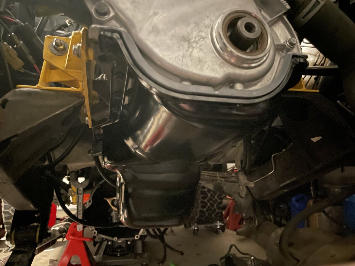 Girdle in place....oil pan surface was NOT clean yet.