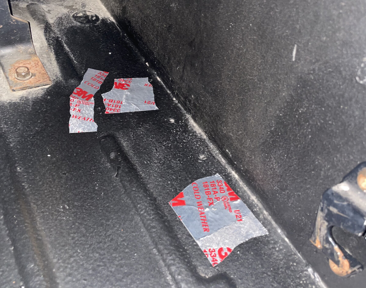Over the years I’ve drilled a lot of small holes in the floor for various things that are pretty much all now out of service. Since I’m doing a flooring kit, now is the time to cover them. I first dabbed the holes using some black touch up paint by duplicolor. Using the HVAC ductwork tape, I put two layers of tape straight down, on top of every hole.