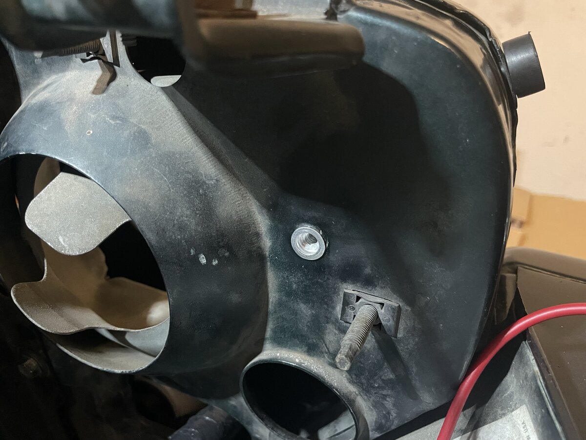 I got the new fog-light capable harness from eBay, hoping that I could go back to bone stock, do the little fix for the side markers and be done with it. This meant I was planning to hook up the stock headlight grounds, which are wires bolted to the grille with self tappers. Those holes wore out long ago, so I installed rivnuts.