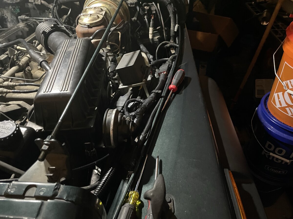 Well it wouldn't be me if I weren't changing courses right in the middle of projects. I was working on my headlight harness which was going to be wired intricately to my relay box with resistors to provide a bright daytime running light that dims with the lights being turned on. I got most of the way done with that project but was not happy with the way the wiring length fit the grille. Not to mention it was really "busy" with lots of wiring needed to perform each job. It was a real pain. Towards the end, I said screw it and bought a factory fog light supported headlight harness from eBay.