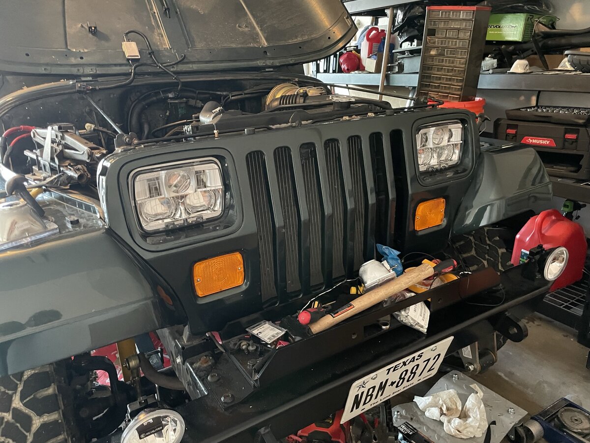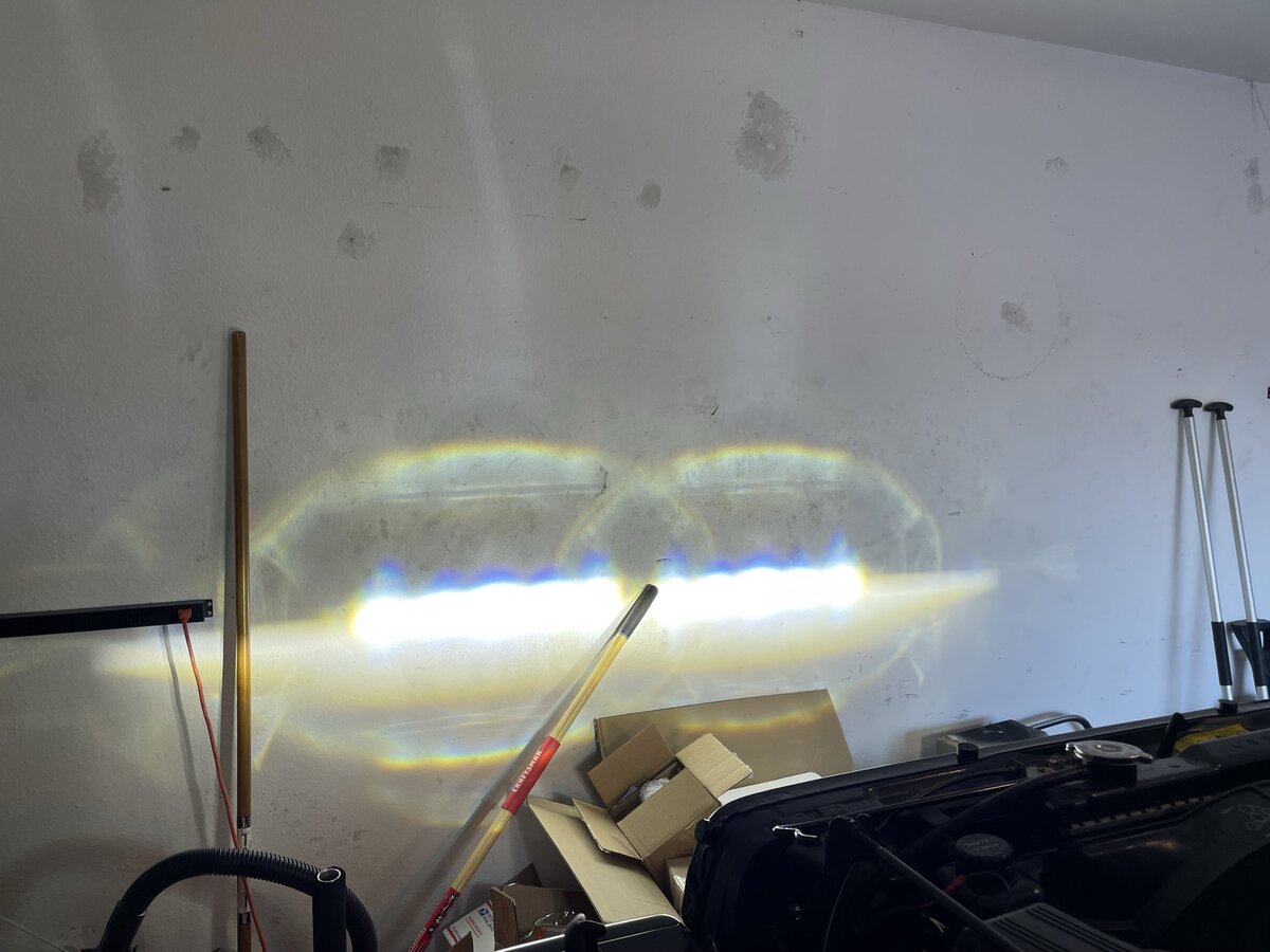 Go figure, the headlights showed up and they were not at all like the photoshops! doesn't really matter though, I really like how they turned out. They look almost like a stock headlight, except vastly improved. They have a super sharp cutoff, the heater works intelligently and warms up fast, and I think they match all my LED bulbs nicely. Like I brought 2022 back to 1994. Mix of classic and modern.