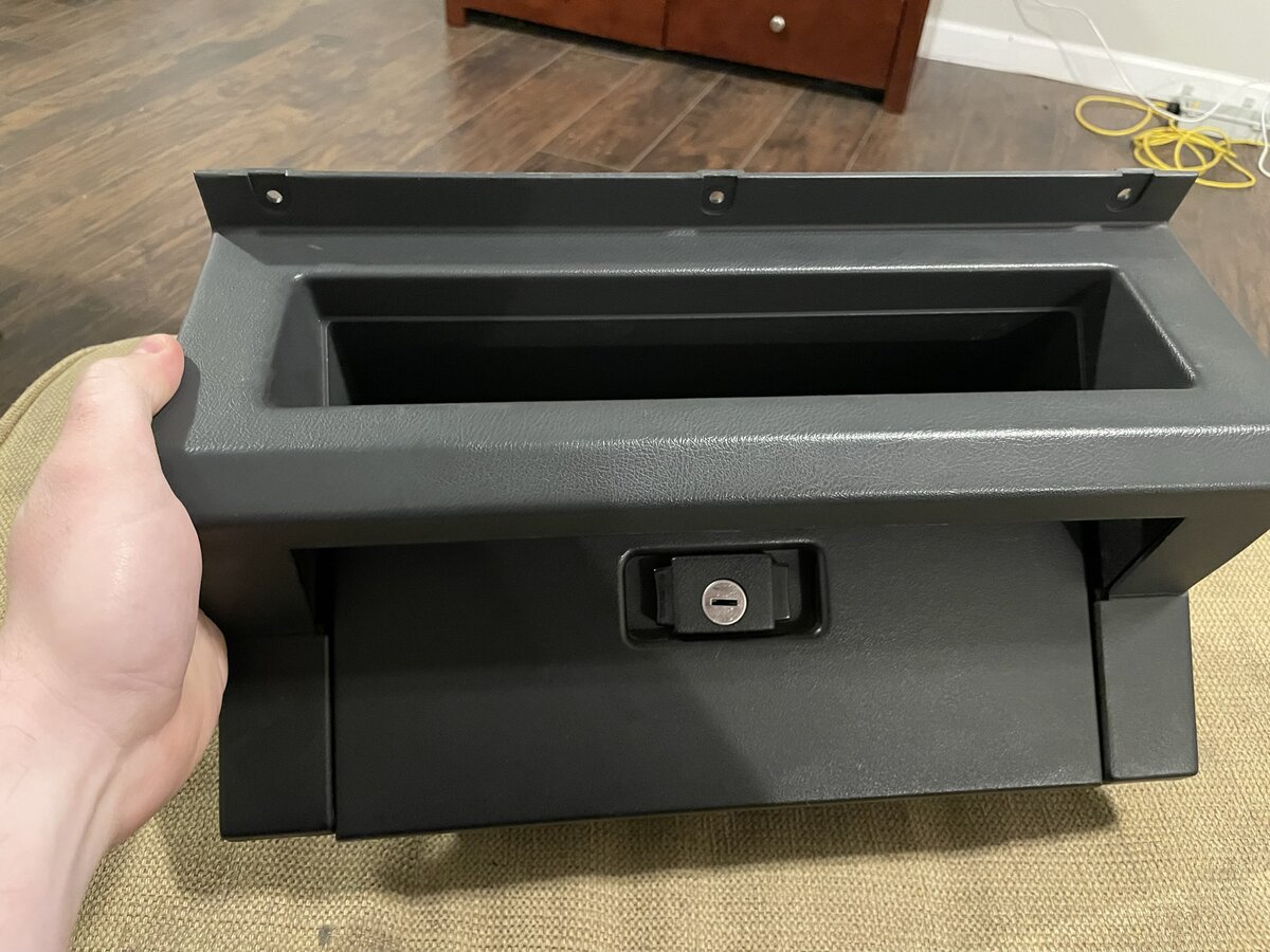 I'm kind of on a "back to stock" kick....not on things like suspension, bumpers, or lighting, but the dash and how things are operated. Many moons ago, in 2014, I spent $180 of the $500 I had at the time as broke ass college student, to buy the tuffy glove box. I thought the thing was so cool, I had to have it. I already had the console, and insisted that I needed the glove box too. Got it delivered with the matching key/lock and everything. Installed it, and it rattled like crazy. After years of rattling I found a way to add some preload to the door with rubber bumpers that fixed the rattling, but honestly, I never really liked the look.