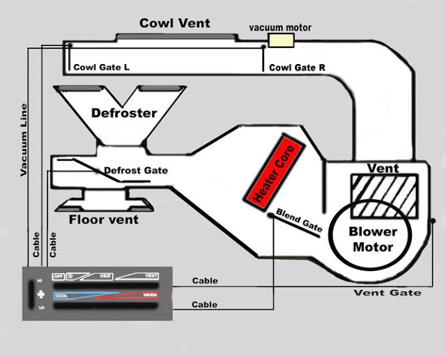 I get asked a lot of questions about the YJ heating system and I've noticed a lot of posts on the forums about heater related issues. In fact, most people know very little about what exactly goes on inside the heating plenum when they slide those dash levers for heat or fresh air.